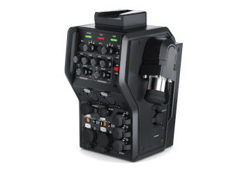 Conviete el modelo URSA Broadcast en la cámara ideal para la recopilación electrónica de noticias. Incluye manija superior con orificios roscados de 6.35 mm (3/8 in), armazón resistente, soporte para micrófonos, montura liviana y bases laterales para conectar distintos accesorios.