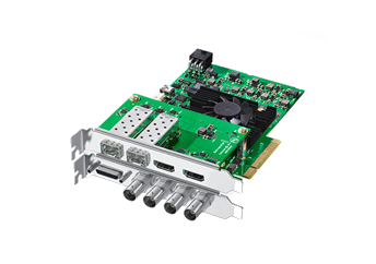 Tarjera de captura y reproducción PCIe 8K de perfil bajo, diseñada para la producción de largometrajes de alta gama. Incluye conexiones SDI 12G de cuatro enlaces y es compatible con definiciones SD, HD, UHD, 4K y 8K.