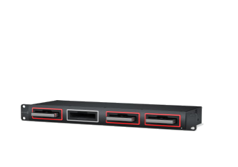 Solución personalizada de 1 U para bastidores que permite instalar conjuntamente dispositivos Studio Converter, ATEM, HyperDeck Studio, Web Presenter, Teranex Mini y UltraStudio.