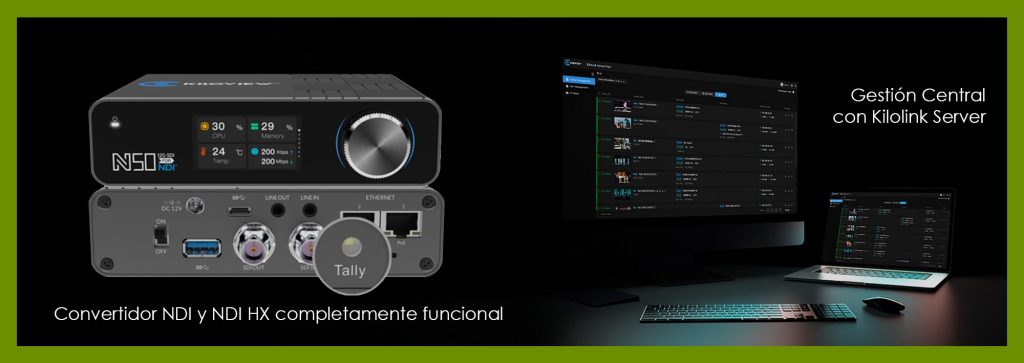 Conversor bidireccional de 12G-SDI/USB a NDI y viceversa que admite NDI|HX y codificación y descodificación de señales de vídeo SDI hasta 12G-SDI. Un gran dial de desplazamiento y la pantalla OLED en color, permiten ver y ajustar fácilmente los parámetros de funcionamiento de este conversor. Funciones como PoE y alimentación CC, control PTZ, entrada/salida de línea de audio 3,5mm, audio multicanal y funciones de intercom, hacen del conversor Kiloview N50 una exclente elección para la transmisión profesional de vídeo por IP. En el modo de codificación, el N50 es capaz de convertir fácilmente una señal de vídeo 4K 12G-SDI en un flujo NDI o NDI|HX.