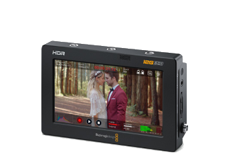 Este modelo incluye las prestaciones de la versión 12G de 5 pulgadas y además ofrece una pantalla HDR de 7 pulgadas, grabación en tarjetas SD y discos USB-C, y compatibilidad con formato Blackmagic RAW.